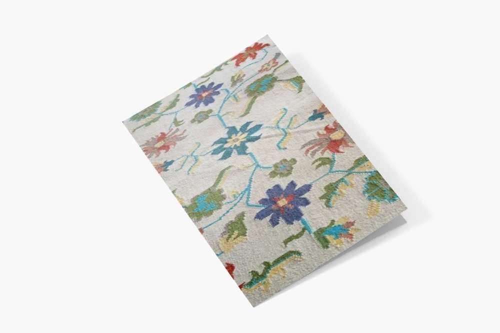 | Design | Flowing floral vines framed by a contrasting blue border, featuring a vibrant multicolored floral pattern |
