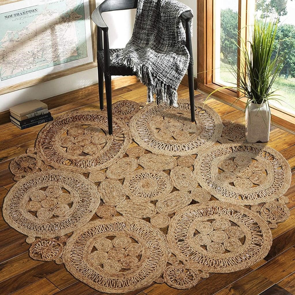 The Vintage Floral Jute Medallion Rug brings a touch of heritage charm and modern craftsmanship to your space. Inspired by classic European motifs, this hand-braided masterpiece features intricate floral detailing, making it a statement piece for any room.