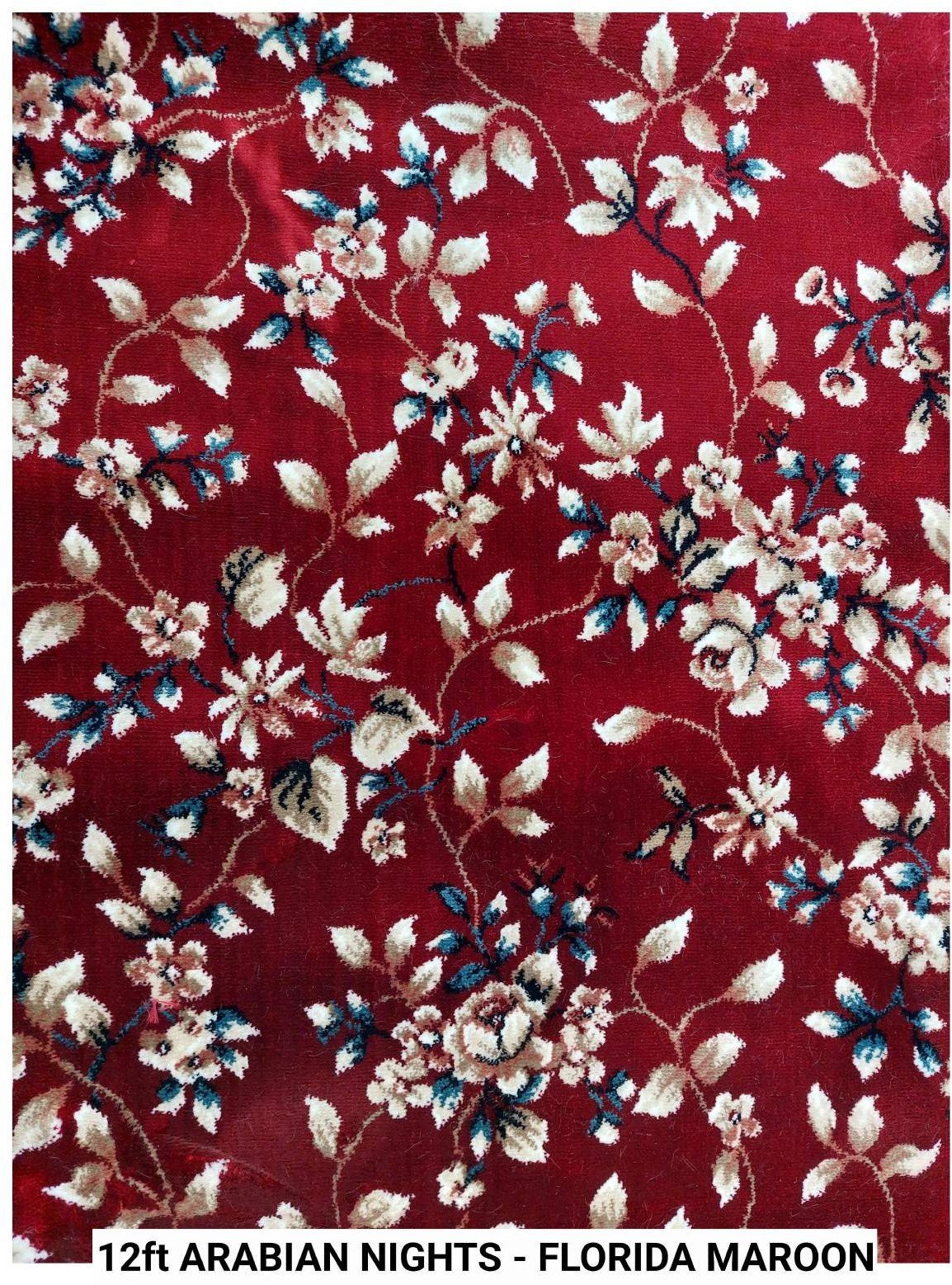 The Florida Maroon carpet exudes warmth and sophistication with its deep maroon base and intricate floral pattern. Designed to add a regal touch to any space, its plush texture and rich colors make it a timeless choice for both modern and traditional interiors.