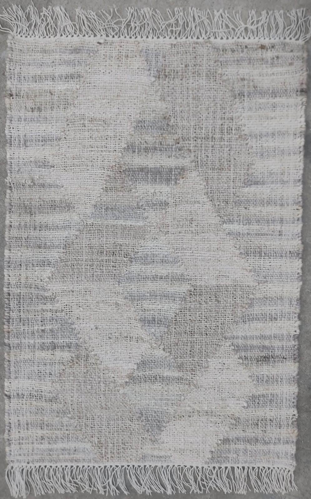The Frosted Weave Dari rug exudes tranquility with its soft grey and off-white hues, creating a serene, wintry aesthetic. Featuring a subtle geometric diamond pattern and handwoven texture, it strikes the perfect balance between rustic charm and modern sophistication, making it ideal for minimalist and contemporary spaces.