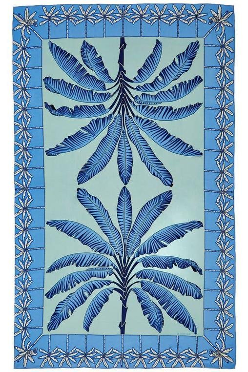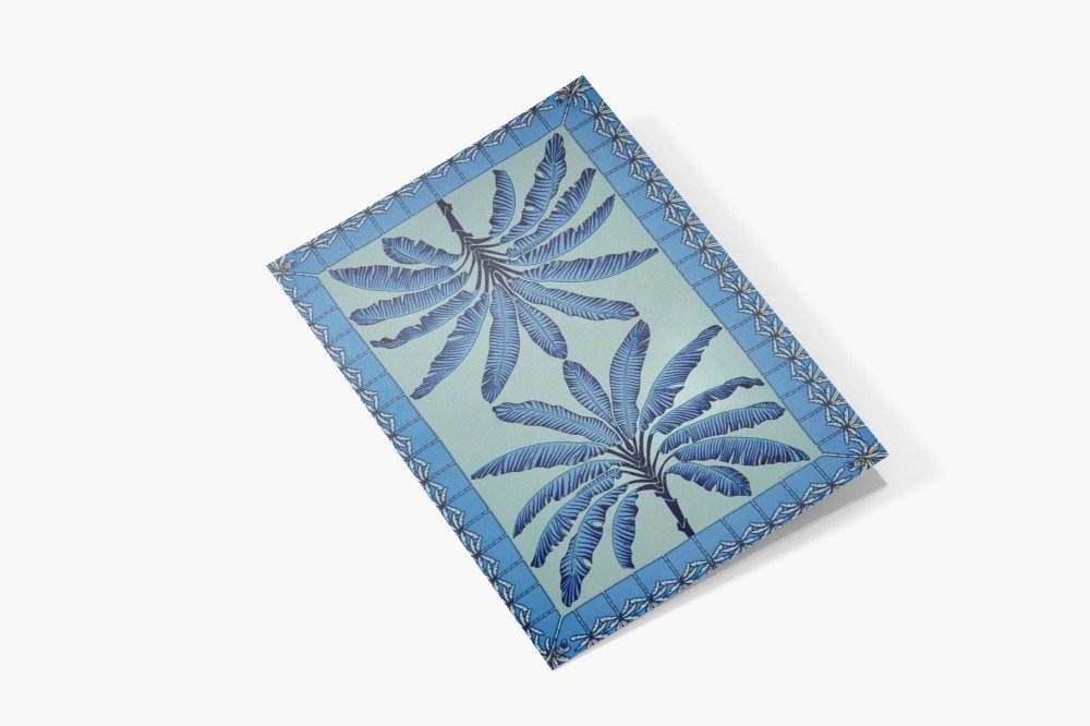 Bring the spirit of the tropics into your home with Island Breeze. This hand-tufted rug features a striking composition of stylized palm leaves in deep navy against a cool aqua backdrop, framed with a repeating botanical motif that evokes traditional island textiles. The interplay of rich blues and fresh turquoise tones brings serenity and bold elegance, perfect for sunrooms, beach homes, or any space craving a coastal calm.