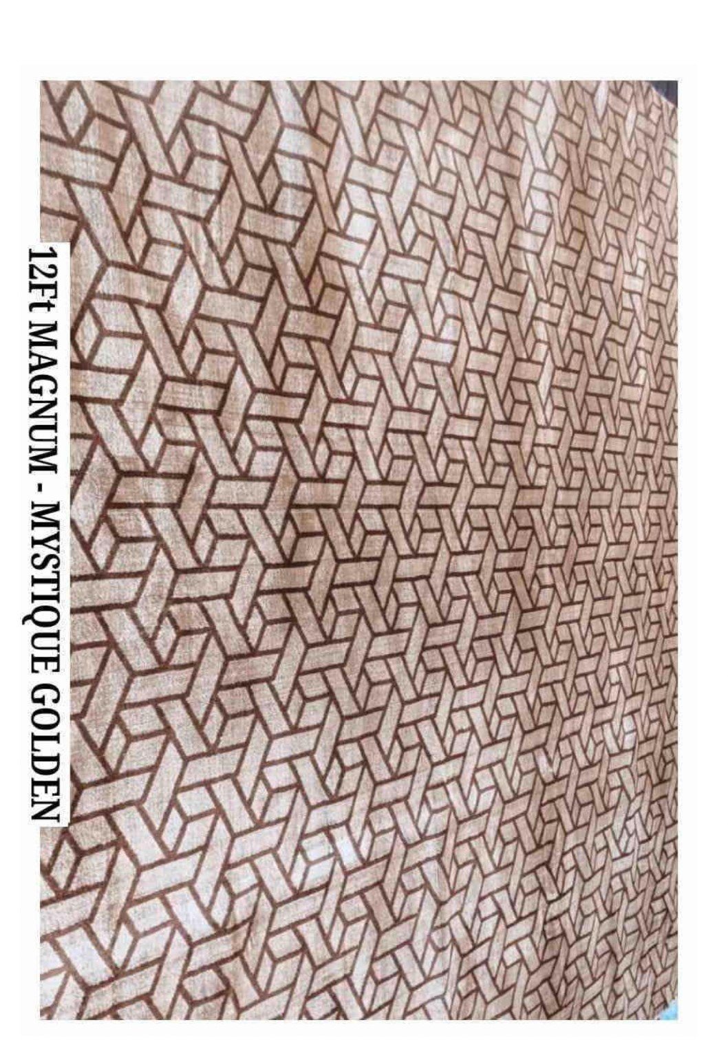 | Design | Striking geometric 3D pattern with a warm golden and earthy brown color palette |