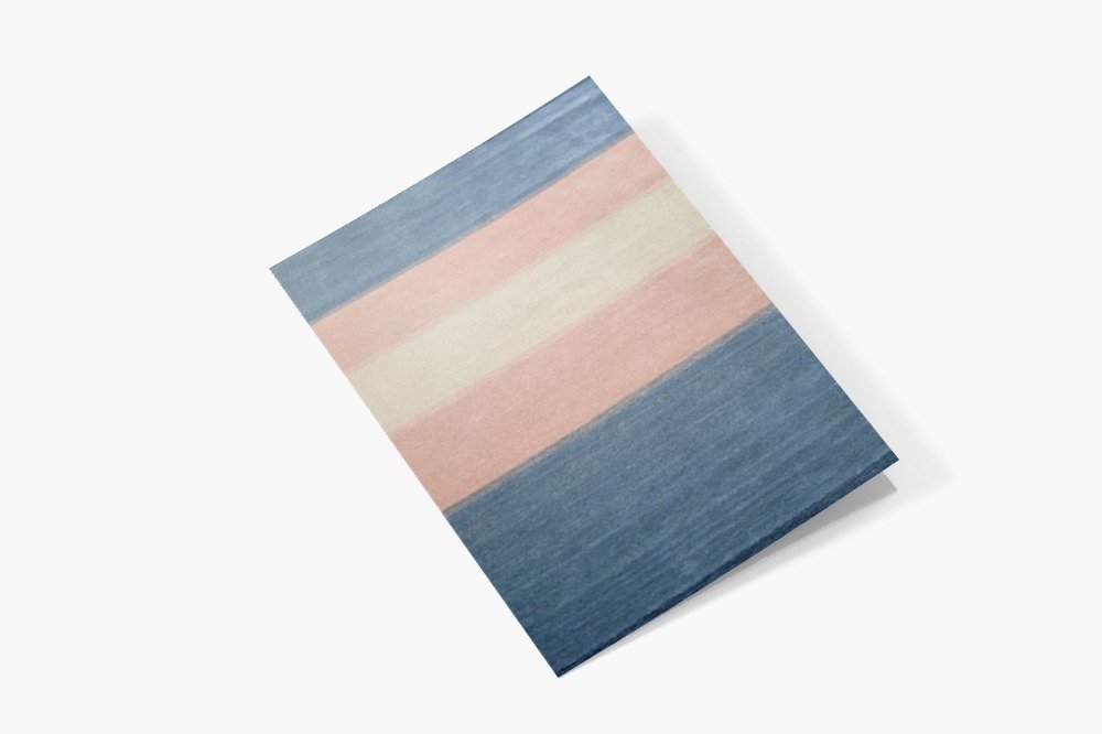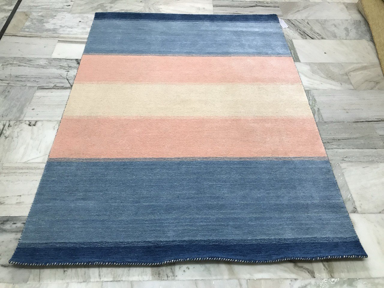 The Ocean Sunset handloom carpet is a stunning blend of serene blue tones and soft pastel peach, evoking the beauty of a sunset over the ocean. The gradient effect creates a soothing and elegant ambiance, making it a perfect statement piece for modern and minimalistic interiors.