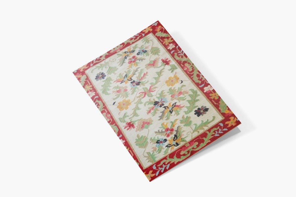 | Design | Traditional floral vines with ornamental framing on an ivory base, highlighted by a striking red border and multicolored floral patterns |