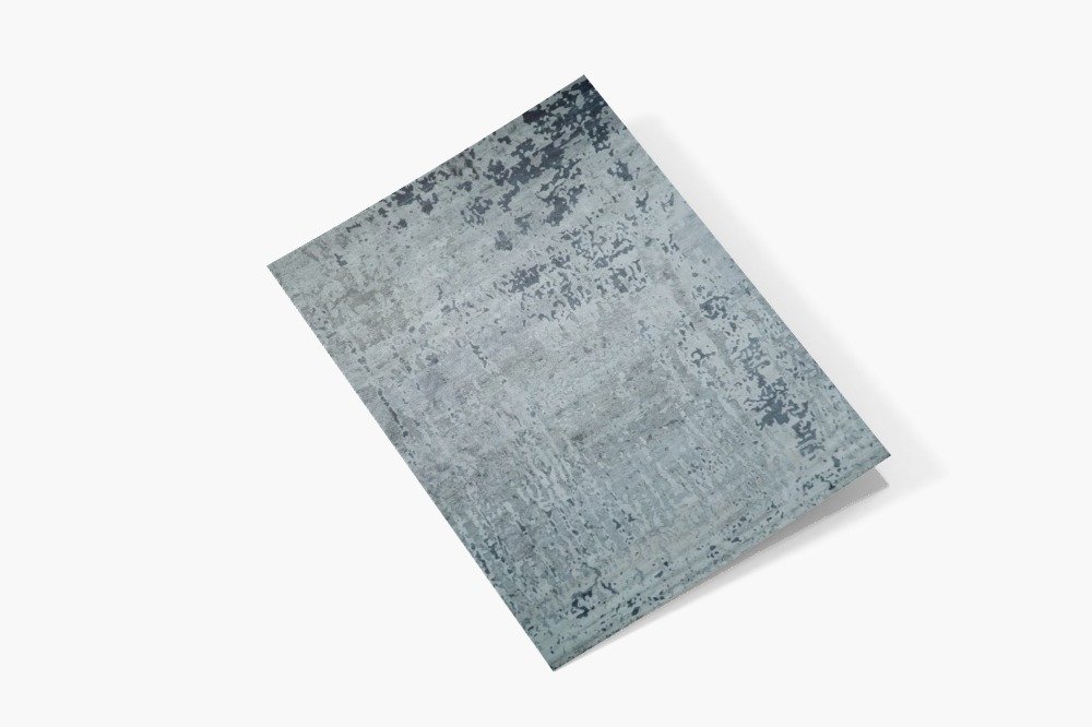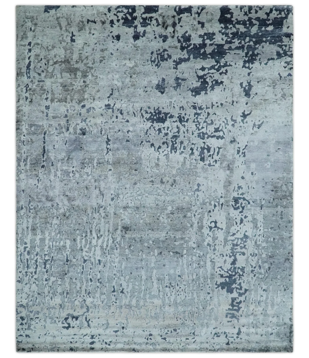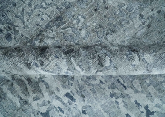 This Premium Area Rug is a modern masterpiece, crafted of a luxurious Bamboo silk blend. It features a Hand knotted Silver and Blue modern Abstract design with carved Pattern detail for a striking look. A perfect addition to any décor.