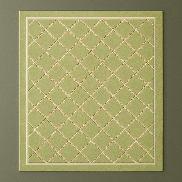 Inspired by the elegance of garden trellises, the Verde Lattice carpet features a soft green base delicately patterned with an ivory lattice design. Its subtle geometry brings harmony and sophistication, while the fresh palette adds a calming, nature-inspired charm to interiors. Hand-tufted in pure wool and bamboo silk, it offers both comfort and refinement, perfect for modern or classic spaces alike.