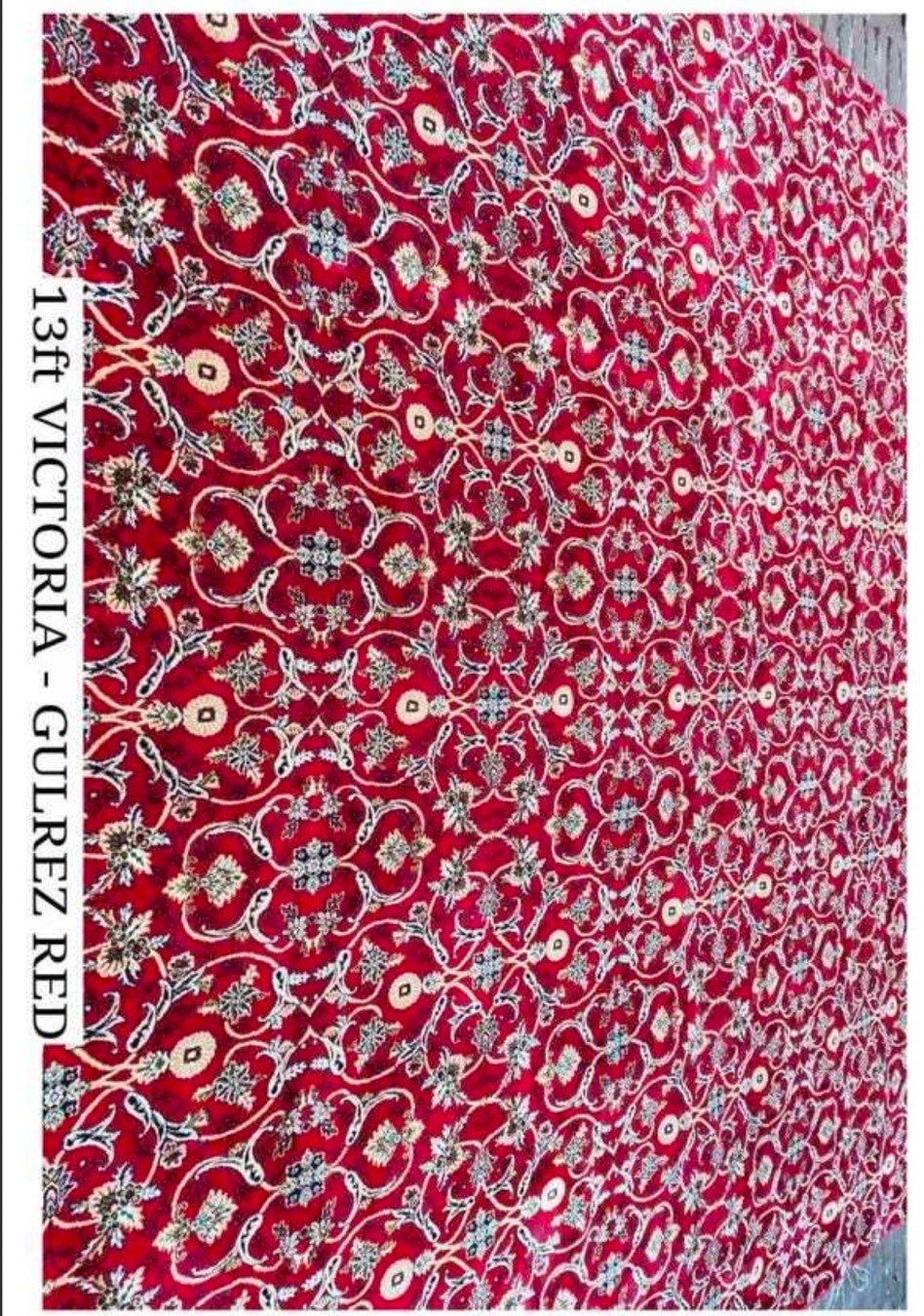 Make a bold statement with the Victoria Gulrez Red machine-tufted carpet, a stunning fusion of traditional artistry and modern craftsmanship. Featuring an intricate floral and vine motif in rich shades of deep red, ivory, and gold, this carpet exudes warmth and timeless opulence. The vibrant red background enhances the detailed patterns, making it a captivating centerpiece for luxurious hotel lobbies, elegant living spaces, or grand office interiors.