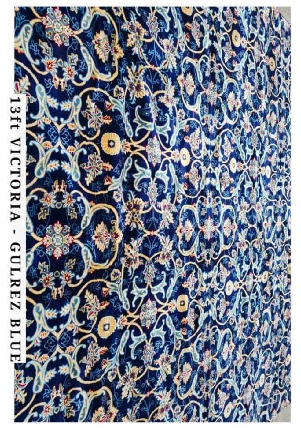 Transform your space with the Victoria Gulrez Blue machine-tufted carpet, a perfect blend of classic elegance and modern durability. Featuring a regal floral and vine design in rich royal blue, ivory, and gold, this carpet exudes a majestic charm. The deep blue backdrop enhances the intricate patterns, making it an eye-catching centerpiece for luxurious hotels, upscale living rooms, or professional office settings.